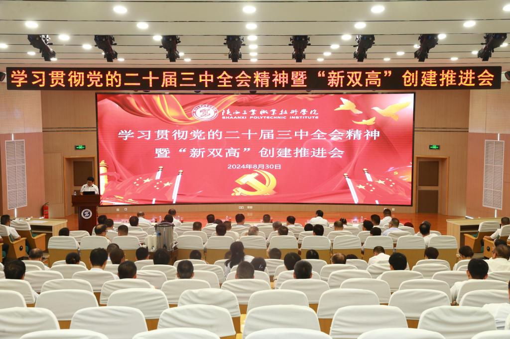 为深入学习贯彻党的二十届三中全会精神,抢抓职业教育改革发展新机遇,加快推进落实现代职业教育体系建设改革重点任务,为“新双高”创建提前谋划部署,全力做好秋季开学各项准备工作,求真务实推进学校事业发展再上新台阶,8月30日,我校在渭城校区学术会堂召开学习贯彻党的二十届三中全会精神暨“新双高”创建推进会,全体校领导、处科级干部、教研室主任参加会议。会议由党委副书记田昊主持。