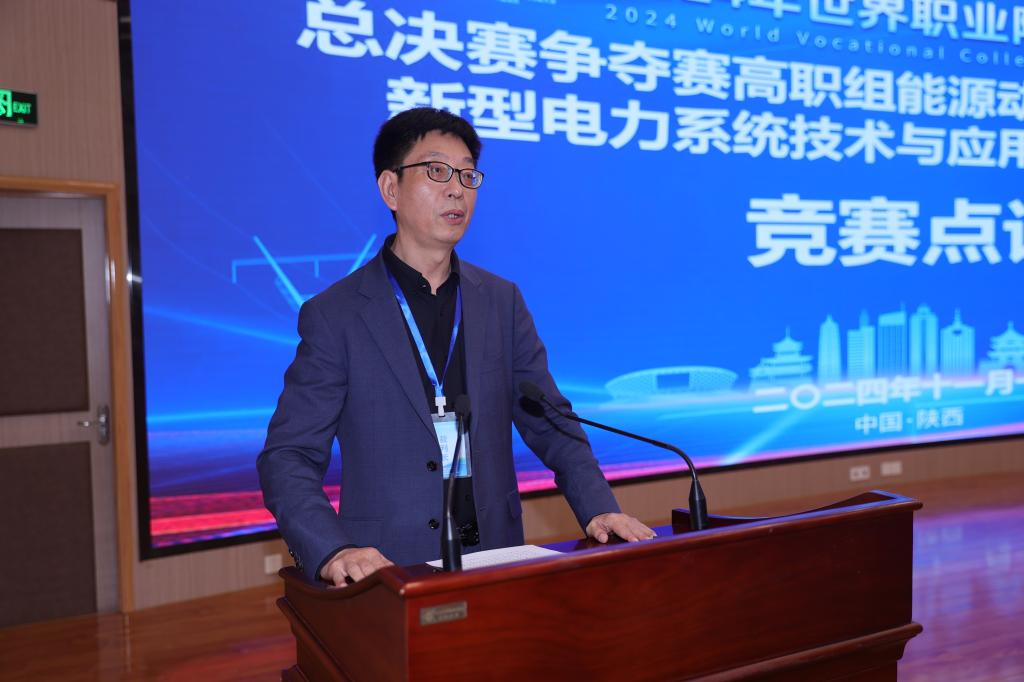 闭赛式现场,新型电力系统技术与应用赛项裁判长宋奇吼作赛事技术点评和裁判工作总结,中共陕西省委教育工作委员会、陕西省教育厅二级巡视员高巍,陕西省教育厅职业教育与成人教育处副处长周杰,星空网页版登录入口党委副书记、校长刘永亮,星空网页版登录入口副校长梅创社出席闭赛式并为获奖选手颁奖。