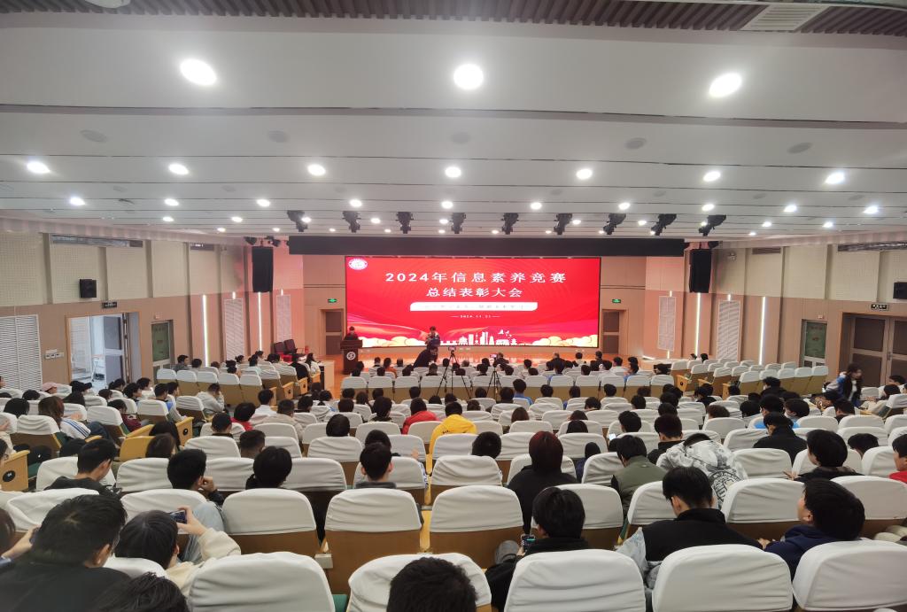 11月21日下午,我校2024年信息素养竞赛表彰大会在渭城校区学术会堂顺利召开。副校长刘清,图书馆馆长王丁,教务处、学生处、信息化建设中心等相关部门领导,各二级学院总支书记及获奖师生代表等400余人现场参加了大会,大会由图书馆副馆长王艳主持。