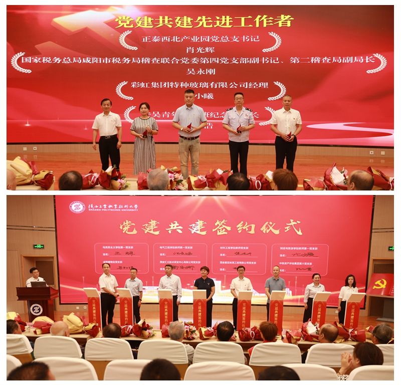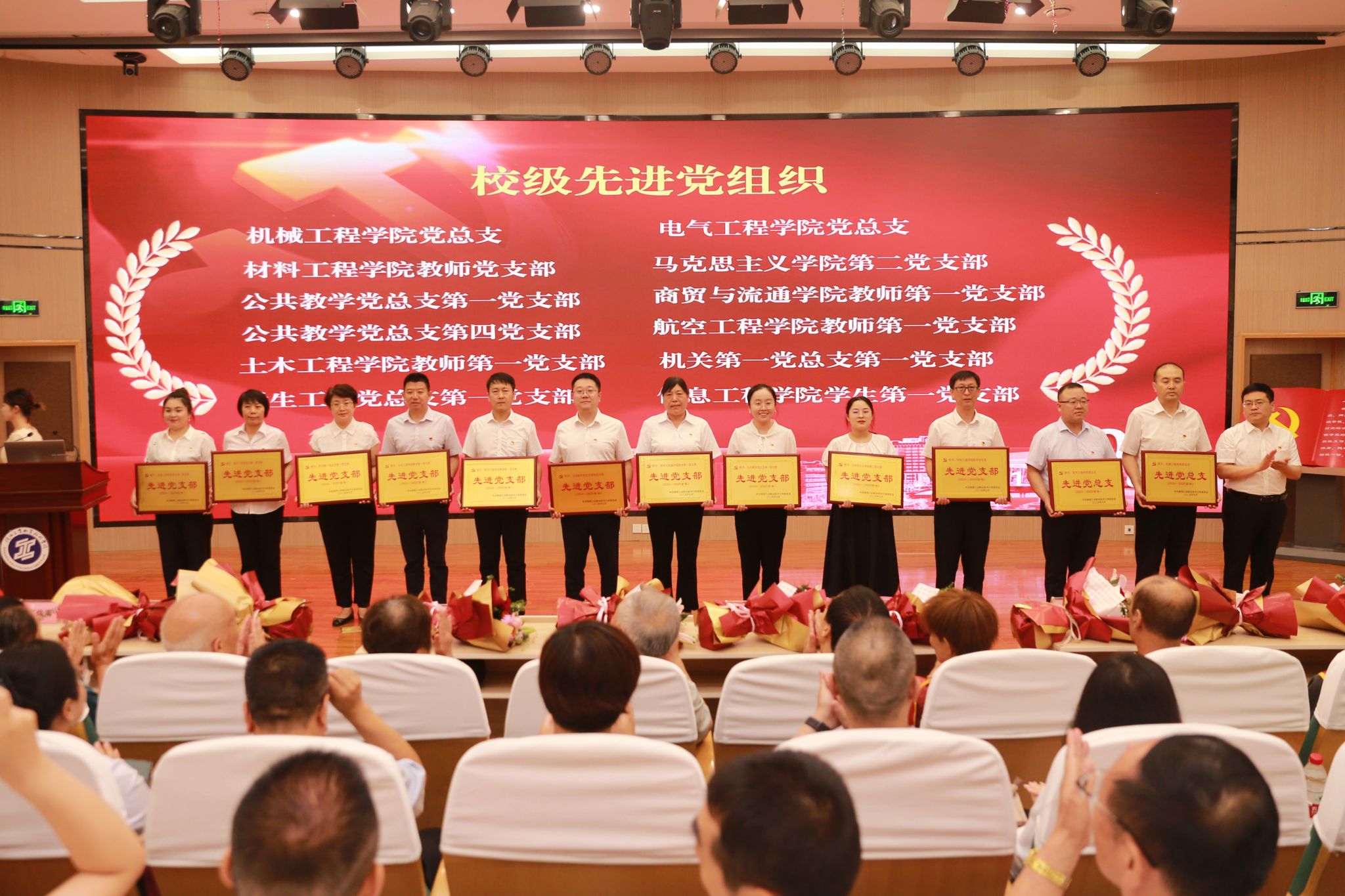 过去一年,全校党员身先士卒、率先垂范 ,学校取得了一系列熠熠生辉的荣誉,涌现出一批优秀个人与先进集体。与会领导为全国文明校园、“红色匠心”领航工作站、渭城校区“红色匠心”领航工作分站、“经开校区”领航工作分站、教育部立德树人机制综合改革试点院系、首批“双带头人”教师党支部书记工作室授牌,并为优秀主题党日、“两优一先”获奖人员颁奖,一同见证荣耀时刻。