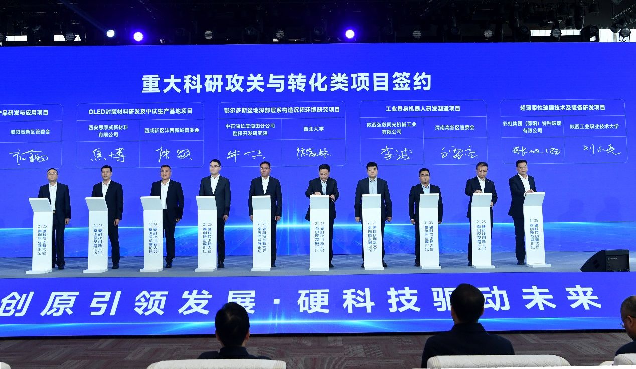 开幕式上发布了秦创原创新驱动平台建设成效、西安硬科技重大突破以及陕西省2026年暨“十五五”首批科技创新重大需求,并集中签约了20项重点项目。校长刘永亮与彩虹集团(邵阳)特种玻璃有限公司咸阳分公司成功签订“下拉法玻璃成型设计及技术开发”重大科研攻关与转化项目。