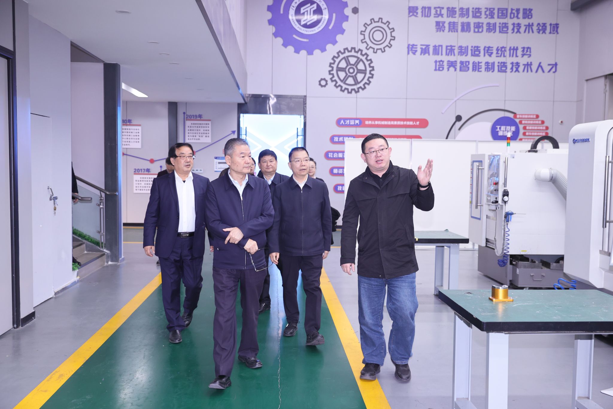 李兴旺一行先后参观了学校的智能制造协同创新中心、先进制造技术工程中心等重点实训基地。每到一处,李兴旺都认真听取基地负责人的详细介绍,仔细询问基地的教学设施、校企合作、科研成果以及人才培养等方面的情况。他对学校在智能制造领域取得的显著成就给予了高度评价,并鼓励学校继续发挥专业优势,为地方经济发展和产业升级贡献更多力量。