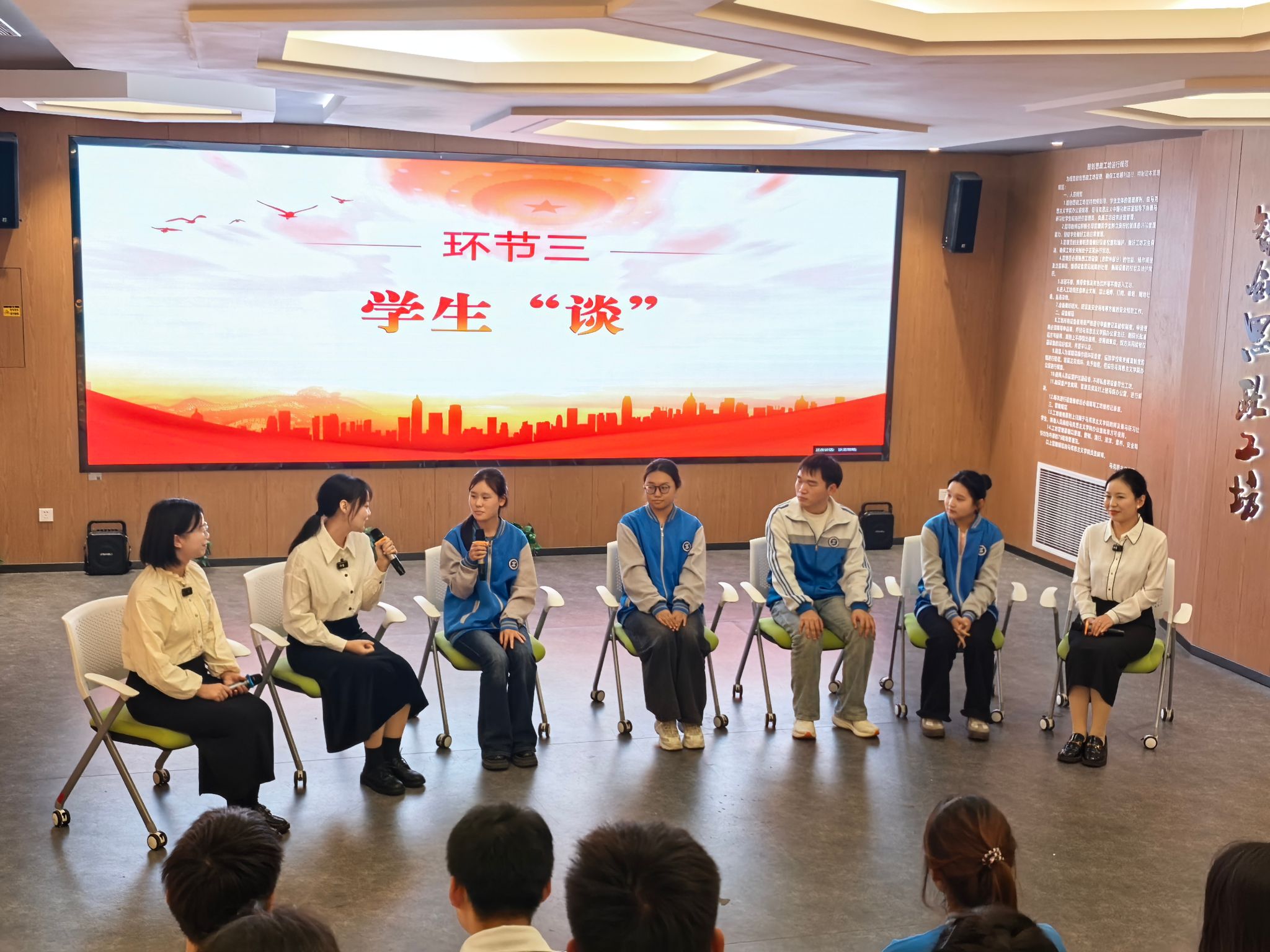在“学生谈”环节,多位学生真诚分享了课堂学习中的收获。一位同学谈及校庆文创设计时表示,将古建筑彩画元素融入笔记本设计的过程,让她深刻体会到“文化的传承者”这一身份的意义;另一位同学则表示,通过学习港珠澳大桥等重大工程案例,不仅掌握了专业知识,更深刻体会到中国工程师勇于创新、追求卓越的担当精神,增强了对中国工程建设实力的自豪感。