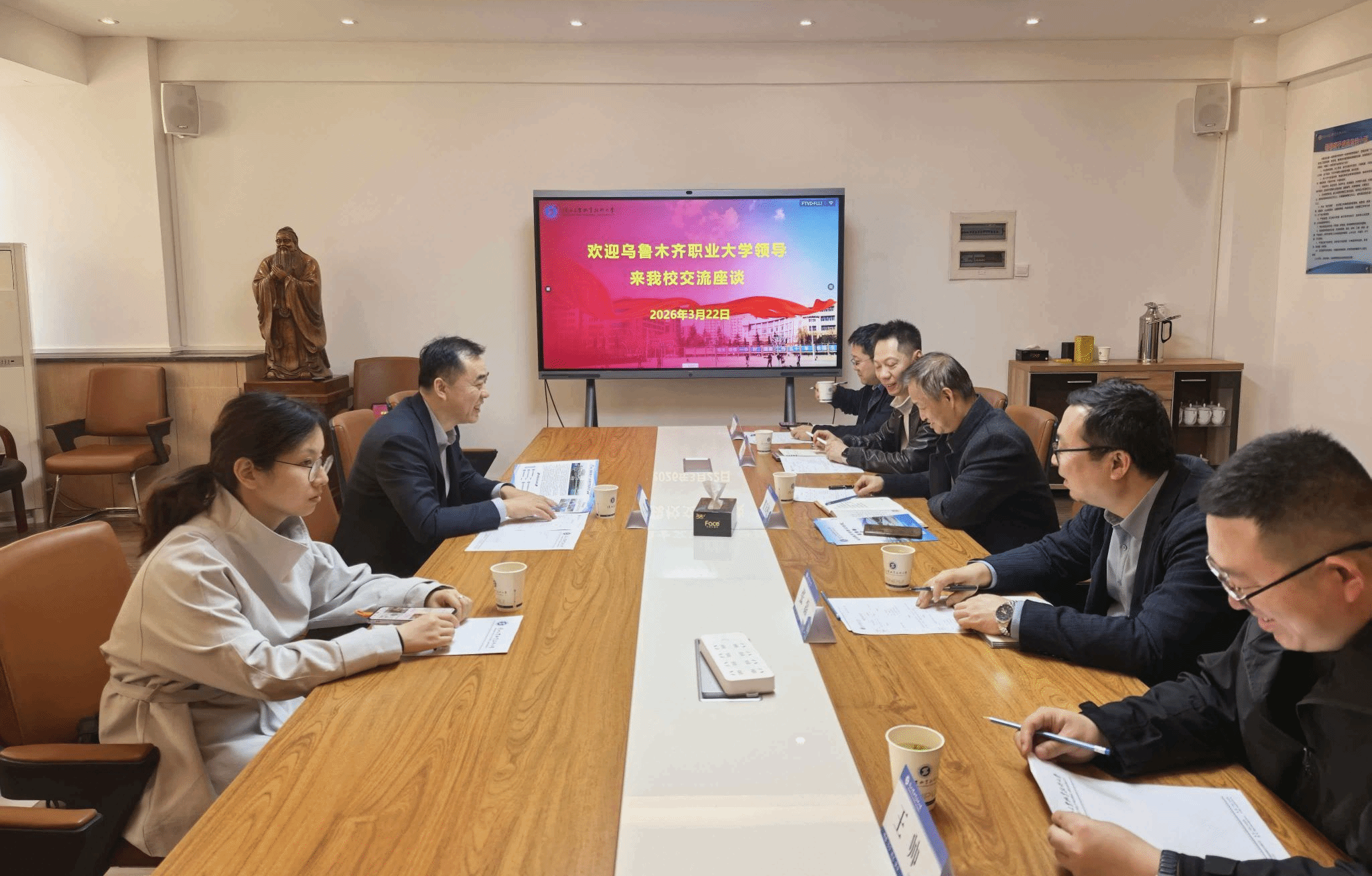 3月22日下午,乌鲁木齐职业大学副校长于凯一行来校交流调研,我校党委副书记贺天柱接待来宾。