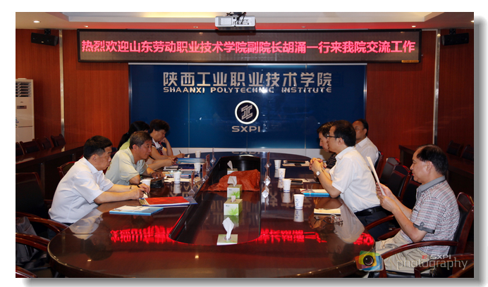 座谈中,王津副院长系统介绍了我院的历史沿革、办学条件、示范院校建设、教育教学改革、校企合作等情况,并对胡涌副院长一行远道而来表示热烈欢迎,同时希望能与他们能在参观交流中对我院发展建设多提宝贵意见。胡涌副院长对我院的热情接待表示感谢。他说,陕西工院和山东劳动职院都是老牌中专名校。近年来,陕西工院在教育教学改革、人才培养工作、示范院校建设等方面均取得了长足进步,尤其是在示范院校建设中的先进经验和做法,将对山东劳动职院建设“山东省高等教育名校”起到很大帮助和指导作用。教务处处长杨卫军、示建办主任王兆奇就我院教育教学质量提升计划、示范建设资金使用等问题进行了介绍,双方还就实践教学体系运行管理、教育教学改革创新、学分制改革、集团化办学等进行了深入交流与探讨。