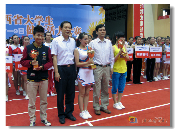 6月8日至9日,由陕西省教育厅主办,西北工业大学和陕西省学生体育协会承办的2013年陕西省大学生健康活力大赛在西北大学翱翔体育馆举行。我院选派42名队员分别参加了高职组啦啦操花球、有氧踏板操、健康街舞等4个项目的比赛,荣获啦啦操花球一级套路第一名;有氧踏板操规定套路第一名;啦啦操街舞二级套路第二名;健康街舞自编套路第二名,并获得团体第三名的好成绩。