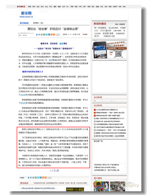 6月8日,中华人民共和国中央人民政府门户网站“中国星空网页版登录入口”栏目、中华人民共和国教育部门户网站、新华网、中国日报网等分别以《高校出组合拳积极应对最难就业季》和《瞄准市场,拓宽渠道,就业帮扶》为题,对我院2013届毕业生高质量、充分就业进行报道。