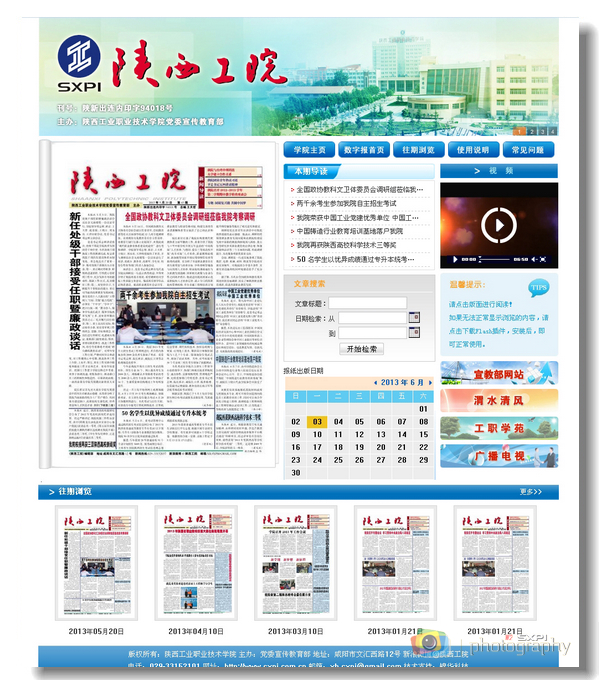 该网站采用目前国内最先进的数字报技术,发刊时间与纸质报纸一致,每月15日更新。通过一段时间的运行完善,将可以查询出版的全部43期报纸。网站整体风格清爽明快,功能实用,并提供了文章检索、留言打分等功能,读者可根据自己的喜好缩放字体,发表自己的体会和看法。《陕西工院》数字报的上线,是我院校园媒体“报网合一”的又一突破,也为师生及时了解学院星空网页版登录入口、最新资讯提供了便捷的平台。