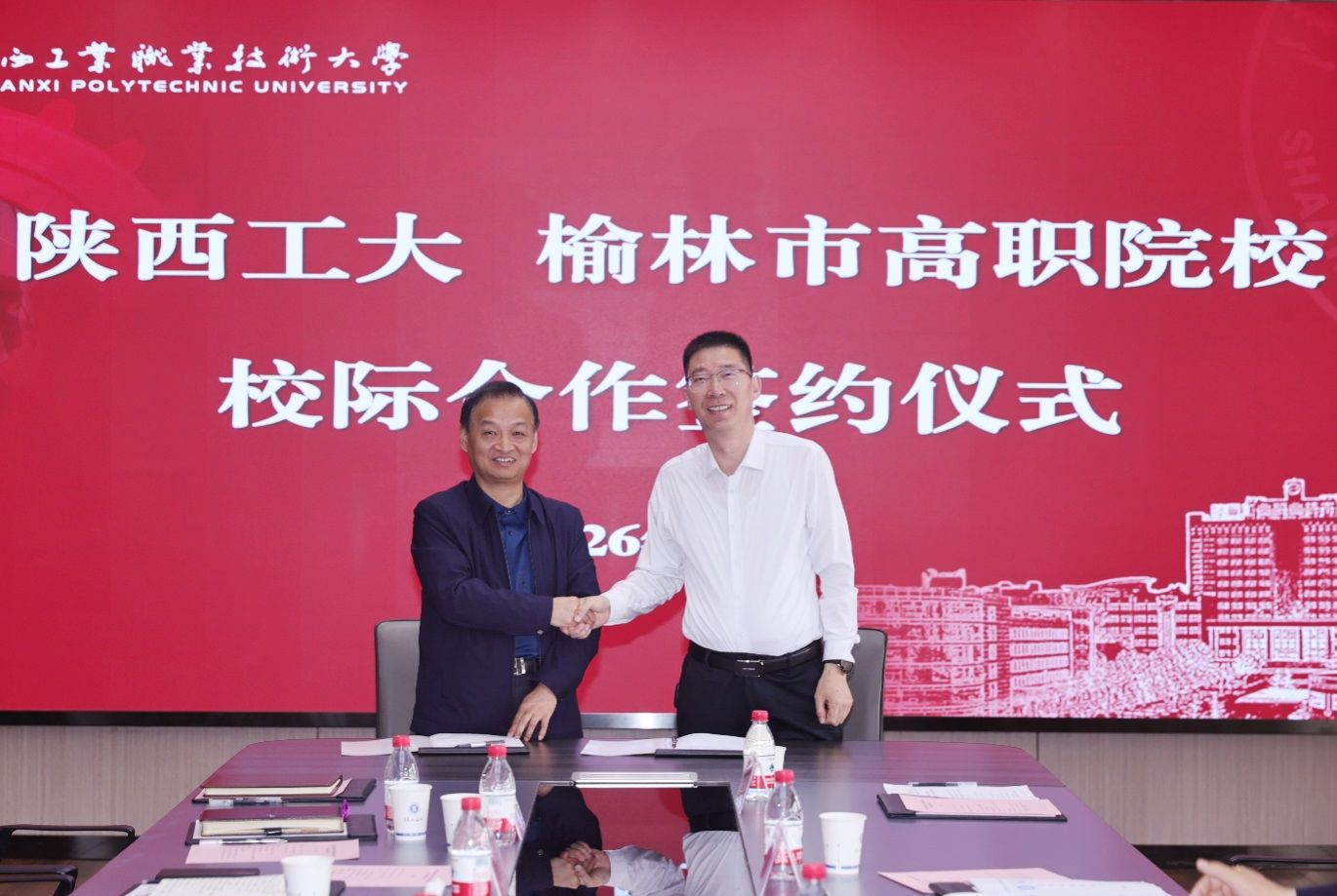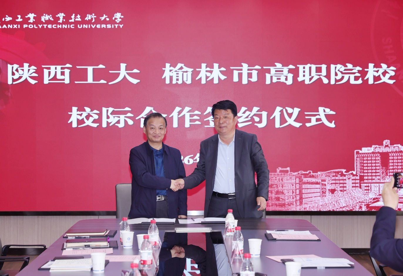 为进一步支撑陕西省 “双极” 战略部署,深化校地融合与校际协同,4 月 15 日,我校与榆林地区三所高职院校在崇文楼九楼第一会议室举行校际合作签约仪式。榆林市教育局党组成员李向春,榆林职业技术学院院长尚爱军,神木职业技术学院副校长李建法,榆林能源科技职业学院党委副书记任忠宽等一行6人到访参会,校长刘永亮同志出席活动并致欢迎词,党委副书记贺天柱主持签约仪式并代表学校签署合作协议,学校规划处、人事处、教务处、科研处、继续教育学院、校企合作处相关负责人参加仪式。
