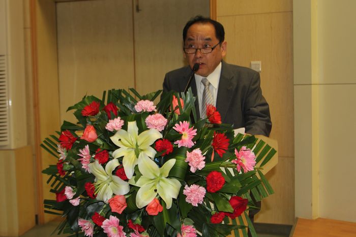 欧姆龙(中国)公司董事长兼总经理土居公司用汉语简要介绍了具有80年历史的欧姆龙集团的基本情况、企业理念等,并向完成学业的欧姆龙班同学表示祝贺。
