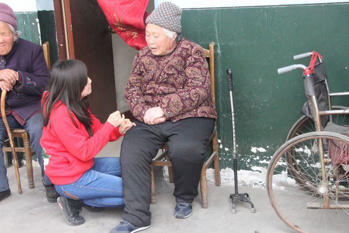 志愿者为老人做按摩