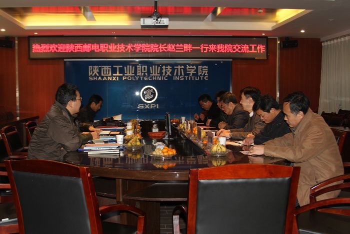12月18日上午,陕西邮电职业技术学院院长赵兰畔、副院长宋维岳、教务处处长张浩、学生处处长冯公里、总务处处长刘虎林一行5人来我院交流工作。我院党委书记邓志辉,副院长王津,教务处、学生处、后勤副处、党政办等相关部门负责同志热情接待了来宾,双方在崇文楼会议室进行了座谈。座谈会由王津副院长主持。