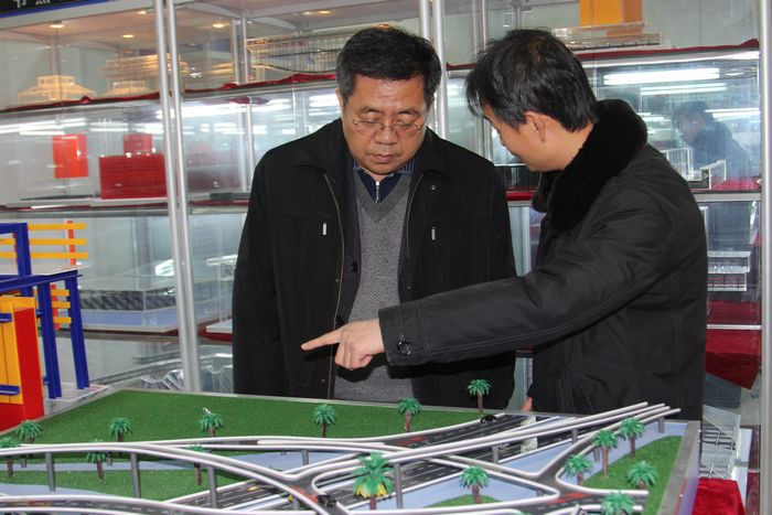 各位领导观摩土木工程学院建筑构造实训室