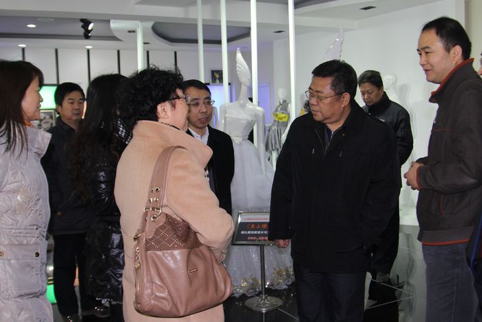 各位领导观摩服装工程学院服装作品陈列室