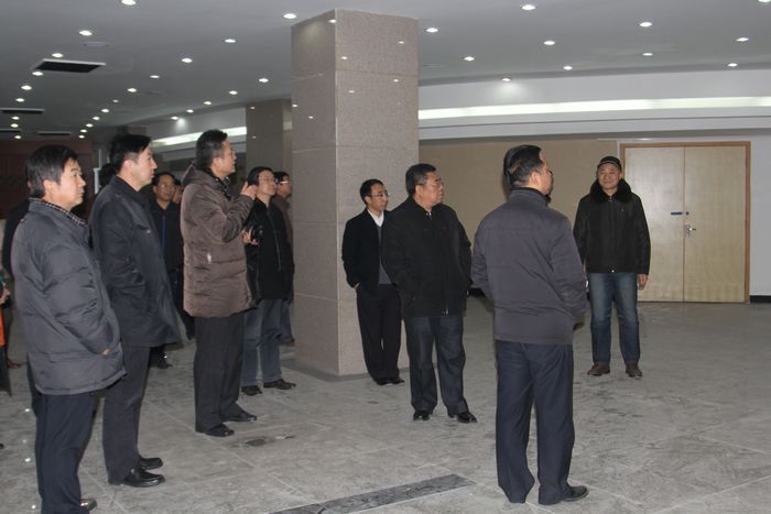 各位领导观摩正在建设中的工商管理学院酒店管理专业实训室