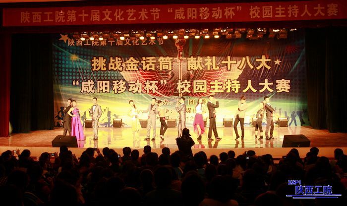 挑战无处不在,秀出我的风采。 11月15日,由我院团委主办、学生传媒协会承办的第十届文化艺术节“挑战金话筒 献礼十八大”----“咸阳移动杯”校园主持人大赛决赛在明德大礼堂举行。我院宣教部副部长张彬、学工部副部长、团委书记闫军、学生处副处长张科海、学生教育管理科科长王康虎及各二级学院团总支书记、学工办老师出席大赛,党焱、焦蕾、成冬梅、钟晓书以及蒋鹏老师担任此次比赛的评委。明德堂内座无虚席,来自陕西中医学院、陕西国际商贸学院、西藏民族学院等五个兄弟院校的同学代表及我院各个学院的1200余名师生观看了此次决赛。