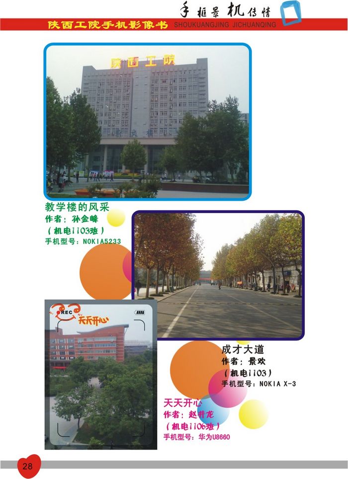 10月30日,我院首届“手框景•机传情——我眼中的陕西工院”校园手机影像展评活动落下帷幕,经过报名征集、评委初审、作品展出、学生投票等环节,最终评出一等奖2名,二等奖4名,三等奖6名。展评产生的优秀作品也已结集出版。