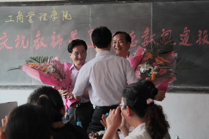 工商管理学院给老教授献花