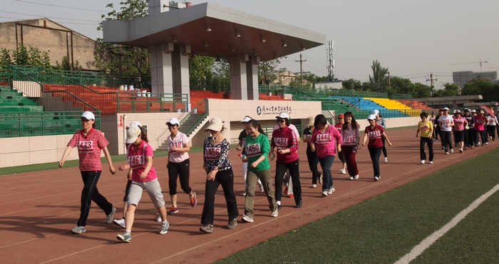 春风和煦旌旗飘,士气高涨鼓瑟鸣。在全体运动员、裁判员和工作人员的共同努力下,经过两个下午紧张激烈地角逐,我院2012年教职工春季运动会于4月27日圆满落幕。运动会以“我运动、我健康、我快乐”为主题,设有男女踢毽子、投篮、徒步3个个人项目和男女混合手足情、同舟共济、穿梭传球3个集体项目。全院23个分会共900余名教职工参加了比赛,500名教职工获得了不同名次和奖励。 所有比赛项目中,男女混合穿梭传球、男女混合手足情、男女混合同舟共济三项比赛对个人技巧、团队协作都有很高的要求。各分会不但派出了队员积极参赛,还组织了啦啦队和后勤队。现场竞争激烈、气氛热烈,加油声、助威声、喝彩声此起彼伏。男女徒步4000米预决赛实际参赛人数达到了72人,刷新了参赛人数的历史记录。整个比赛过程中所有运动员严守规则,无一人违规。广大教职工充分发挥潜力,切实达到了崇尚体育、重视健身、全员运动的目的。