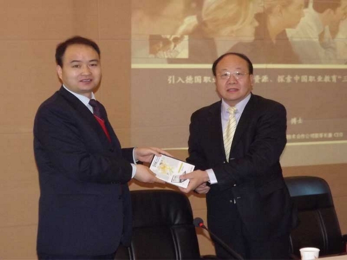 最后,德国凯勒公司中国区总裁高鹏博士作了《引进德国职业教育优质资源,探索中国职业教育三元制模式》的专题报告。