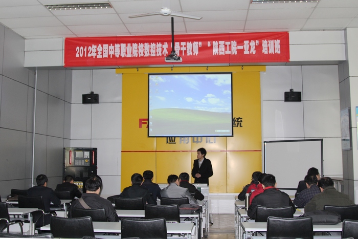 3月26日上午,2012年全国中等职业院校“数控技术”骨干教师“陕西工院—亚龙”培训班在我院正式开班,来自福建、山东、湖北、安徽、浙江、陕西等省中职学校及相关企业的15名学员将在我院接受为期五天的技术培训。亚龙公司西北地区总监李波、陕西销售经理侯娟桃、亚龙数控培训讲师李岩、我院副院长王晓江、数控工程学院卢文澈院长、南欢副院长、数控国家裁判员——我院教师王彦宏以及全体学员在崇文楼九楼会议室参加了开班典礼。典礼由数控学院院长卢文澈主持。