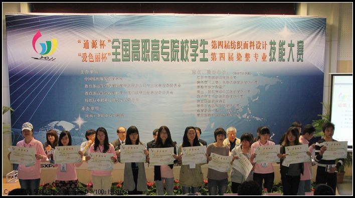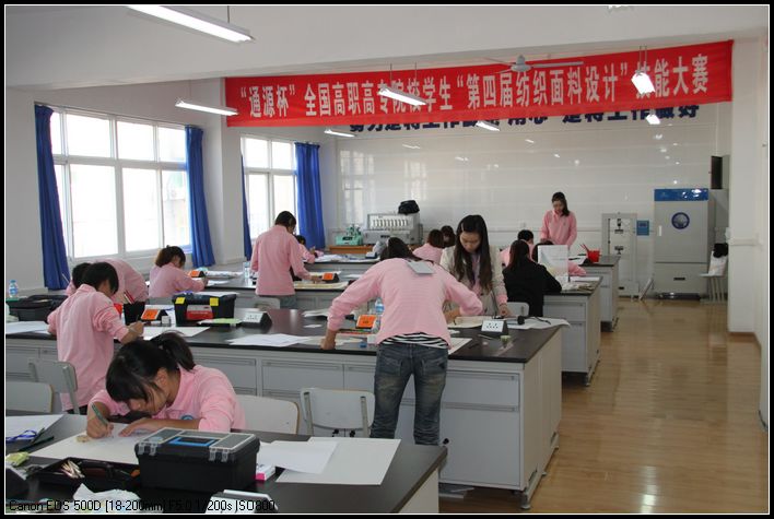 2011年10月15-17日,“通源杯”全国高职高专院校第四届纺织面料设计暨“爱色丽杯”全国高职高专院校第四届染整专业技能大赛在我院成功举行,本次大赛由中国纺织服装教育学会、教育部高等学校高职高专服装纺织教指委、教育部高等学校高职高专轻化教指委、全国纺织行业技能指导中心主办,我院承办。来自广东、河南、山东、浙江、四川、陕西、江苏、江西、湖北、福建等地23所纺织服装类高职院校,35个代表队,210名学生参赛,经过2天激烈的角逐,大赛圆满完成了比赛项目。