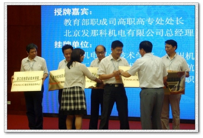 6月26日下午,“FANUC数控系统应用中心”授牌仪式在天津梅江会展中心隆重举行。教育部职成司高职高专处处长范唯、北京发那科机电有限公司总经理景喜瑞作为授牌嘉宾出席仪式。我院作为西北地区唯一挂牌单位,副院长王晓江参加了仪式,范唯处长为我院授牌。