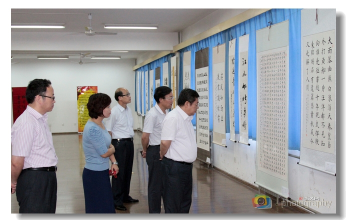 为了隆重庆祝中国共产党建党90周年,展现我院师生员工书画摄影艺术风采和良好的精神风貌,6月28日上午,我院庆祝建党90周年“红色经典记忆”师生书画摄影展在崇文楼11楼A11-11室举行。29日,党委书记邓志辉、党委副书记王天哲、副院长王晓江等领导认真观看了展览。邓志辉同志指出,以后要将此展览变成常规活动,逐步提高教职工的书法艺术修养。