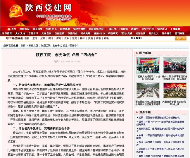 省委组织部“陕西党建网”再度聚焦我院创先争优活动