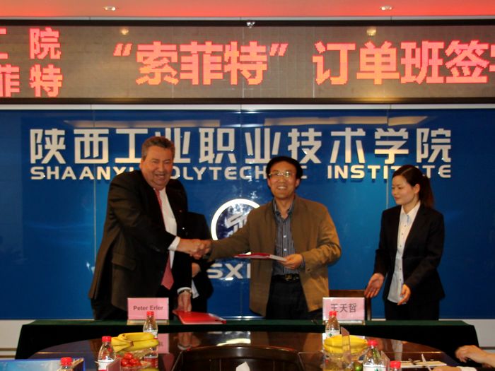 随后,学院党委副书记王天哲和PeterErler总经理在合作协议上签字,双方合影留念。