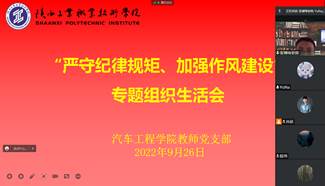 为引导教师党员坚定信仰信念,严守纪律规矩,增强责任担当,改进工作作风。9月27日下午,汽车工程学院教师支部在崇文楼五楼会议室召开专题组织生活会。学院党总支书记高亚宁全程督导,会议由教师党支部书记许冀阳主持,教师党支部全体党员线上线下参会。