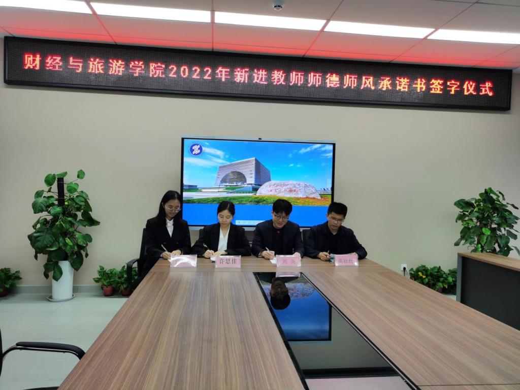 为进一步加强师德师风建设教育成效,会议组织进行了财经学院2022年新进教师师德师风承诺书签字仪式。