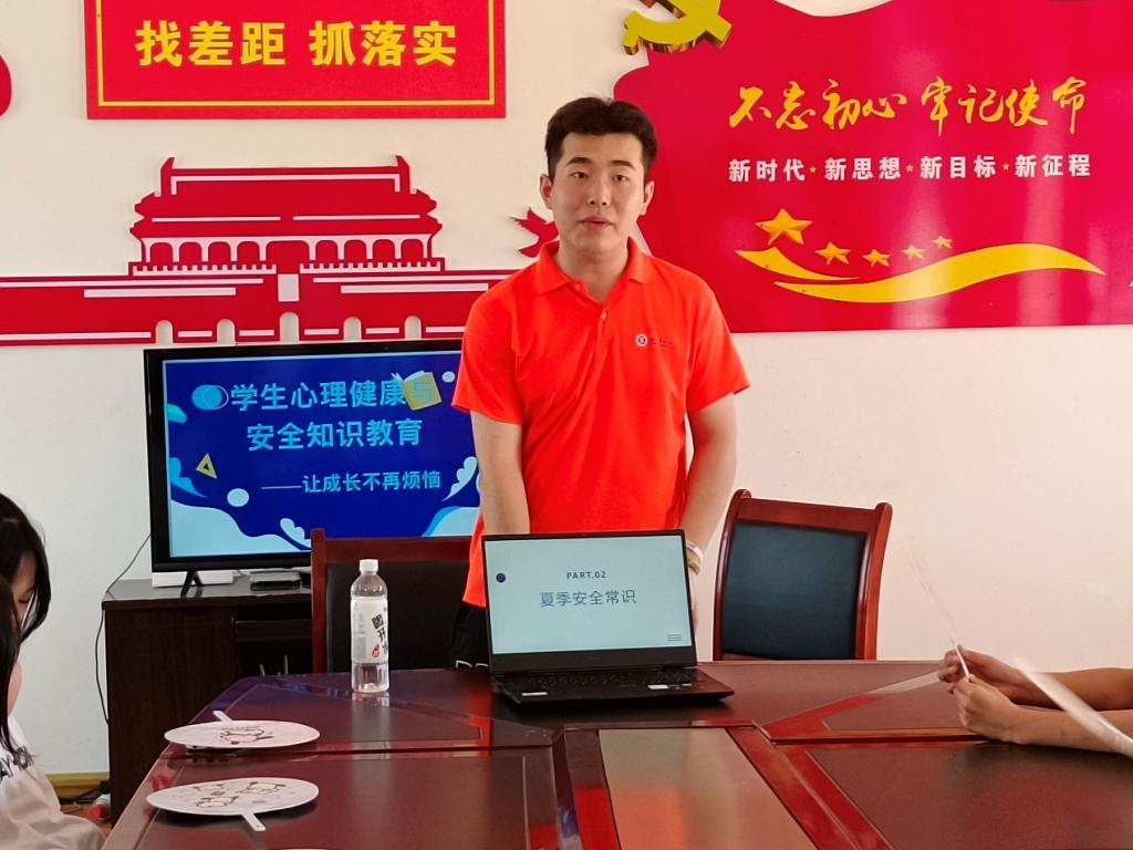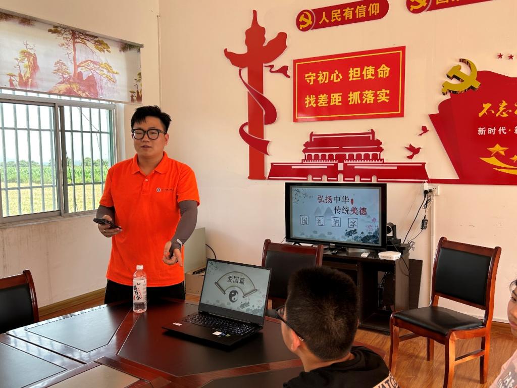 三、安全教育。实践团成员杨勇明以“安全教育护航未成年人健康成长”为题,向孩子们普及了防火、防电、防溺水等安全常识,提升了孩子们的安全防护意识和自我保护能力。活动中,队员们结合真实案例和孩子们亲切互动,孩子们收获满满,脸上都洋溢着收获知识的笑容。