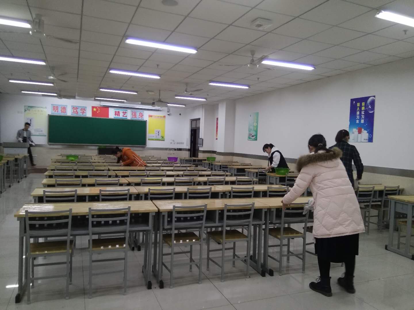 在整个活动期间,学生党员充分发扬不怕苦、不怕脏、不怕累的雷锋精神,认真打扫教室每一个角落。经过一个多小时的辛勤劳动,桌兜清理干净了,桌椅擦洗明亮了,整个教室焕然一新。