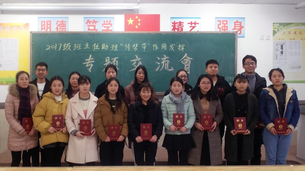 会上,2017级17名班主任助理依次上台分享了自己的工作经验,他们用朴实的语言介绍了他们在担任班主任助理工作期间的做法和体会及自己对班主任助理工作的理解。