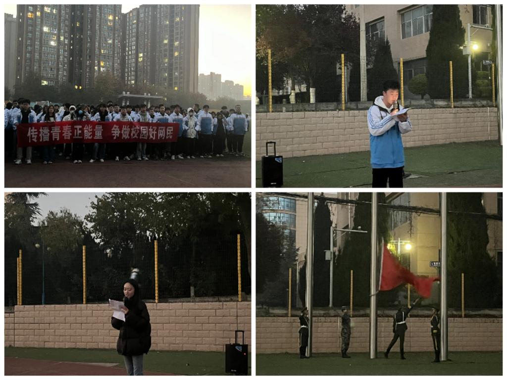 为教育引导全体学生积极参与网络文明建设、营造风清气正的网络环境、争做校园好网民。11月27日,材料工程学院组织开展“国旗下的成长”主题教育活动,本次活动的主题是“传播青春正能量、争做校园好网民”。参加升旗仪式的有材料工程学院党总支书记郝平、团委书记薛媚、学工办全体辅导员以及2023级学生共计380余人。