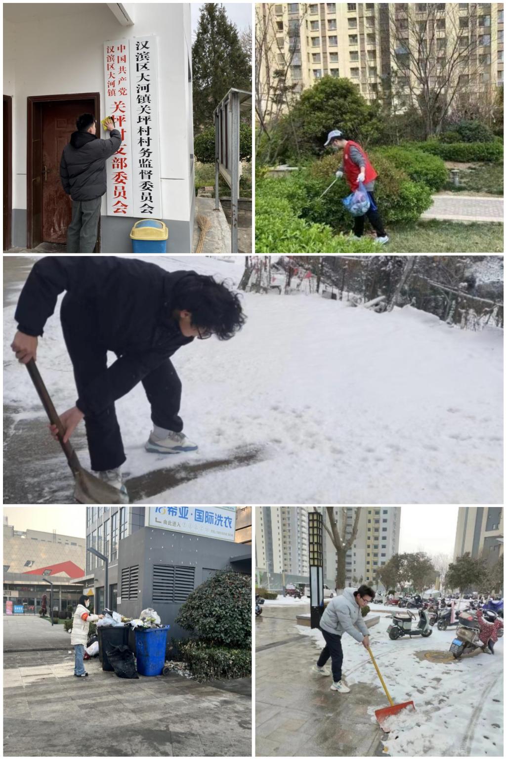 位于安康市关坪村的陈康同学利用自身资源,为家乡村委会的环境卫生和志愿服务做出贡献,缓解了村委会由于过年人手不足的工作压力,充分体现了大学生的精神面貌和志愿服务精神。安康的李道玲同学利用假期实践活动走进万达之眼小区,在小区楼下进行卫生清理,让更多的人看到大学生的志愿服务精神,更好地传递正能量。咸阳崇皇社区的张桐同学作为一名社区志愿者,在大雪来临之际清理小区的积雪路面,保证了小区群众的出行安全。紫阳县麻柳镇的覃红涛同学积极在家乡开展初雪大扫除,克服自身寒冷为村民们开辟了一条安全的道路。梁栋豪同学在村委会和社区进行卫生清扫工作,努力为家乡的环境卫生事业做出贡献。通过这次返乡社会实践清扫卫生工作,他深刻体会到了环境保护和卫生工作的重要性。