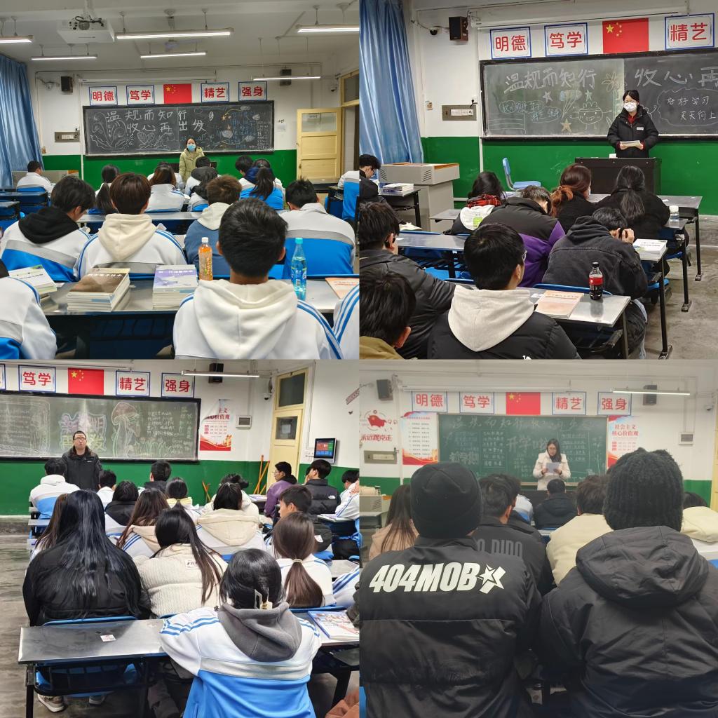 新学期伊始,为使我同学告别假期综合征,进一步明晰学校各类规章制度,开启崭新的学习生活,2月25日晚,电气工程学院组织全体2023级、2022级在校生在各班晚自习教室开展“温规而知行,收心再出发”主题班会。