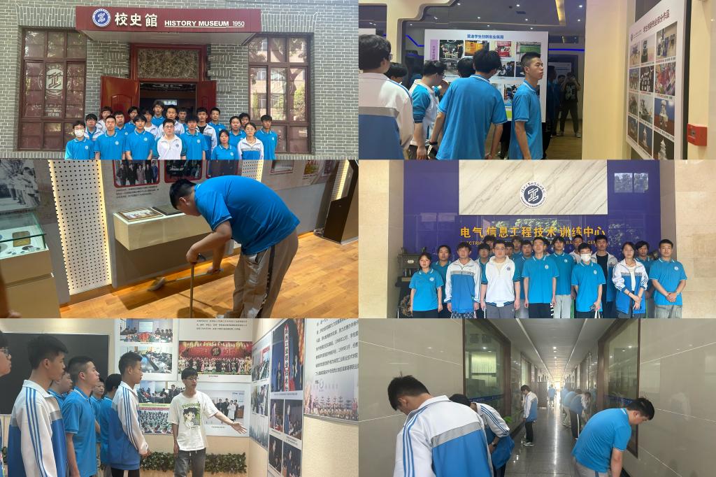 首先,大家走入校史馆,在讲解员的带领下深入了解学校的发展历程。通过参观学习,同学们深刻感受到了工院人不忘初心、不畏艰难的奋进精神。随后,同学们来到行知楼A,对所有实训室进行了卫生清扫及安全排查。