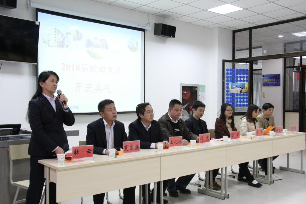 11月7日下午,2018届欧姆龙班举行开班仪式,欧姆龙(中国)有限公司人财革新部部长丁言、人财革新部高级主管贺平、人财革新部郑茵洁,电气工程学院党总支书记杜云、院长段峻,就业处副处长王化冰、电气学院副院长夏东盛、欧姆龙驻校班主任顾建林和2018届53名“欧姆龙班”学生参加仪式。杜云主持仪式。