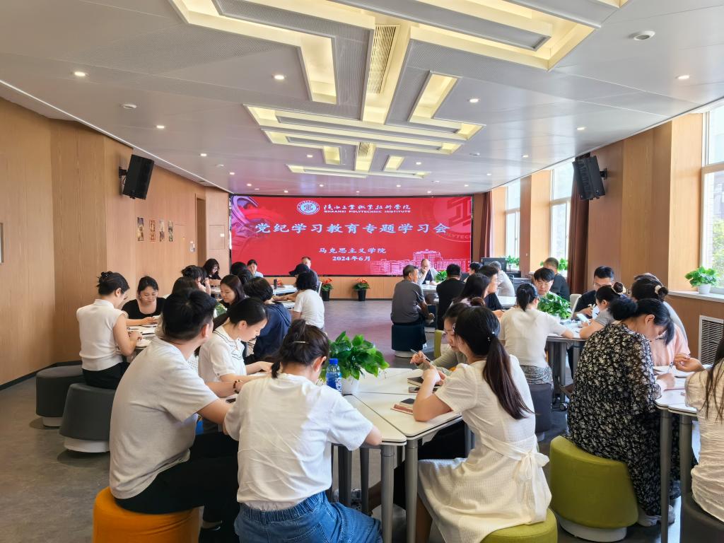 为持续深入学习贯彻习近平总书记关于党纪学习教育的重要讲话和重要指示精神,进一步深入开展党纪学习教育,6月17日下午,马克思主义学院党总支召开了党纪学习教育专题学习会,会议由马院党总支书记舒蕾主持,部门全体教师参加。