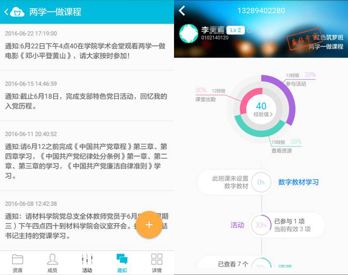通过移动APP云班课创建“两学一做”课程,创新了学习教育形式,激发了学生党员利用手机进行自主学习的兴趣,提升了学生党员的学习教育效果,同时也做好校外实习学生党员的学习教育。