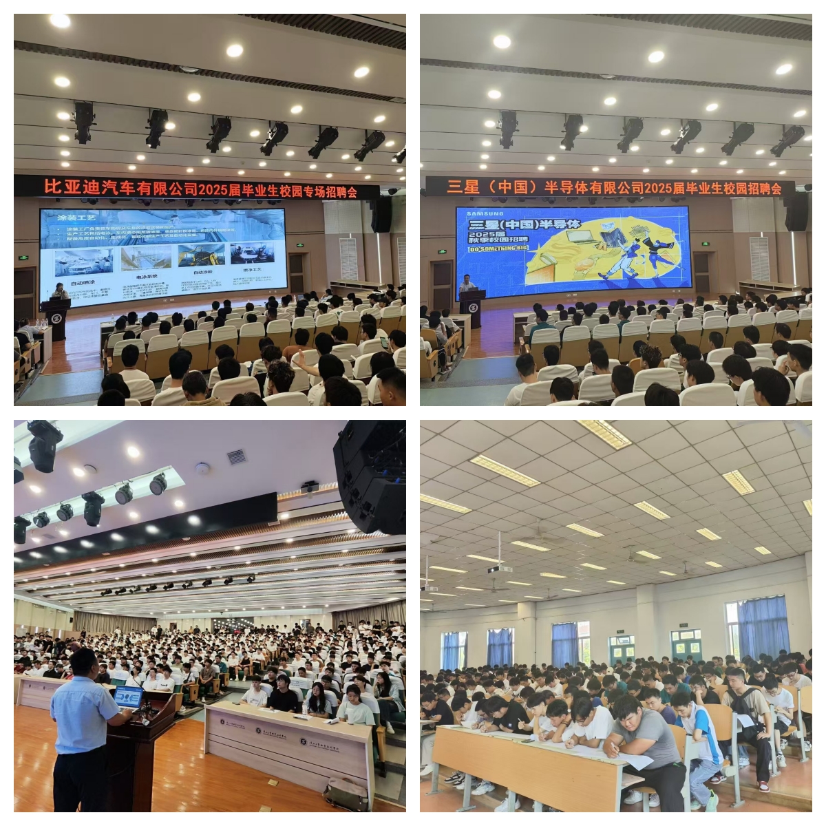 9月12、13日上午,由就业指导处分别举办的比亚迪汽车有限公司、三星(中国)半导体有限公司2025届毕业生校园专场宣讲会在学术会堂举行。本次招聘吸引了500余名毕业生现场投递简历。