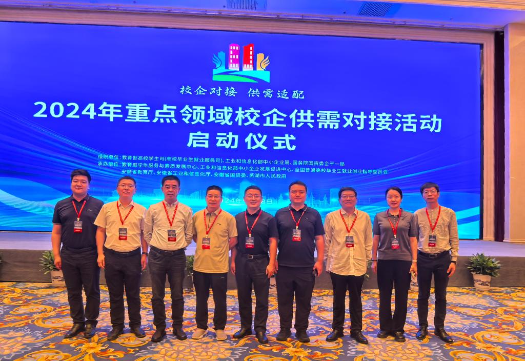 9月28日,教育部、工信部、国务院国资委在芜湖联合举办2024年重点领域校企供需对接交流活动,教育部副部长何光彩、安徽省副省长任清华,国家有关部委、重点高校和省直有关部门负责同志等出席,芜湖市委书记宁波致欢迎辞,市委副书记、政法委书记张东,市领导朱的娥等出席。我校航空工程学院李晓鹏院长、就业指导处杨延波副处长代表学校参加活动。