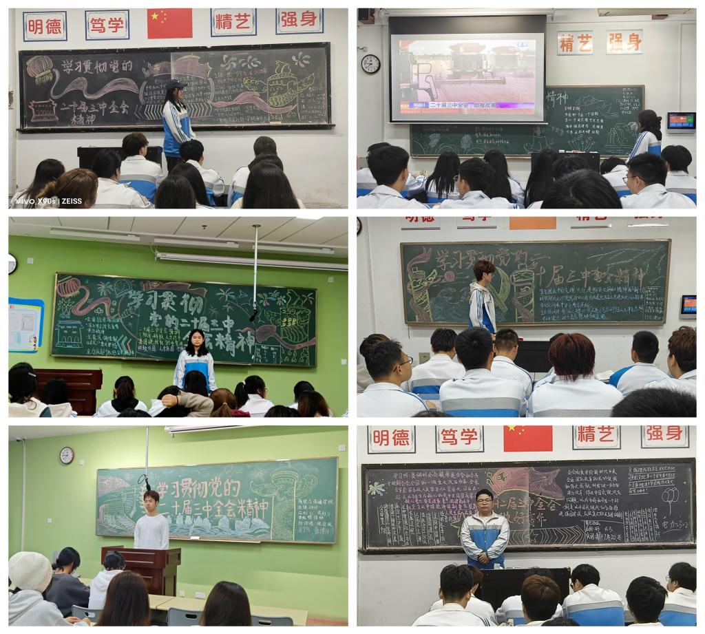 为深入学习贯彻党的二十届三中全会精神,引导团员青年全面把握新时代改革发展的新要求,在改革的浪潮中勇担重任,将个人理想融入国家发展大局,激发广大团员和青年的爱国情怀与奋斗精神,将思想和行动统一到党中央的决策部署上来,以更加坚定的信念和更加饱满的热情投身到国家建设和日常生活中。10月17日晚自习,校团委制定活动方案,在各二级学院团总支精心组织策划下,全校各班团支部开展了“学习贯彻党的二十届三中全会精神”主题团日。