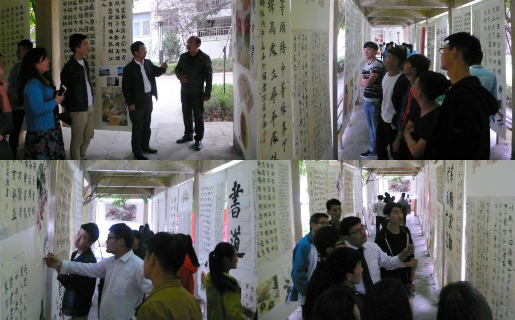 为加强宿舍文化建设,丰富大学生的宿舍文化生活,提高同学们美化环境、文明生活的良好意识,促进和谐校园文化建设,5月24日至26日,学生处举办了陕西工院第五届“宿舍文化·润泽”书法、绘画、摄影作品展,在全院学生中征集的书法、绘画、摄影作品在崇文主楼北绿荫长廊展出。