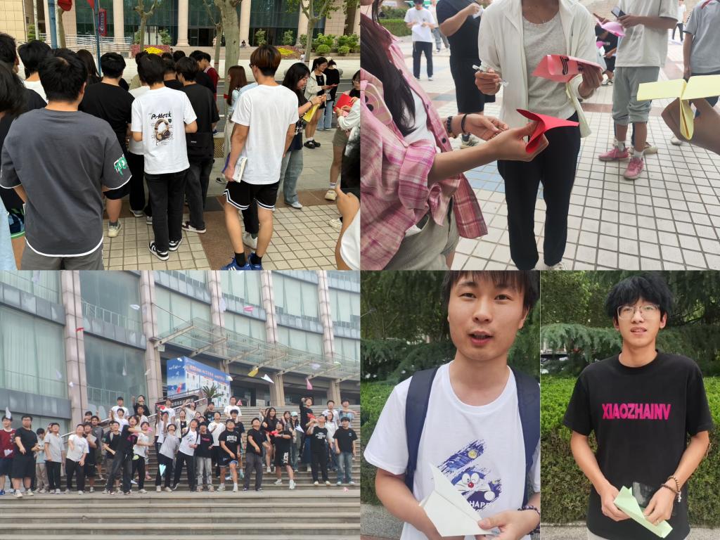 活动以“折翼释压,心向晴空”为主线,参与者匿名在彩纸上写下近期压力或成长中的快乐瞬间。有人记录“实训接线反复失败的焦虑”,有人分享“首次独立完成电路设计的成就感”,更有学生用漫画描绘“与室友相处的暖心日常”。随着主持人一声令下,同学们一同用力将手中的纸飞机抛向天空,形成一片“情绪彩虹”。自动化2401班刘佳强同学说道:“看着写满烦恼的飞机飞远,仿佛心里也轻快了许多。”