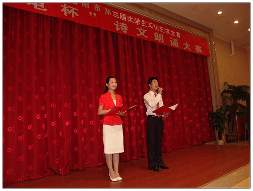 5月20日下午, 由共青团咸阳市委、咸阳市学生联合会主办的咸阳市庆“五·四”第三届大学生文化艺术大赛“陕西机电杯”诗文朗诵大赛在天一酒店多功能厅举行。我院与西藏民族学院、咸阳师范学院等13所高校的14组选手参加了比赛。