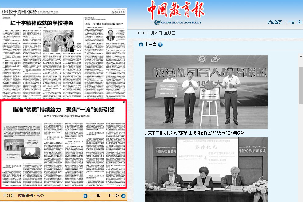 陕西工院以长期办学积淀的职业教育行业人脉资源,联合行业企业,聚合校内外优势资源,主动出击,先行先试。近年来,学院在承担国家教育部门“单独(自主)招生试点”、国家信息化建设试点的基础上,主动承担国家现代学徒制试点、高职诊改试点和高职创新发展行动计划等一系列创新高职教育驱动发展的改革试点新任务。
