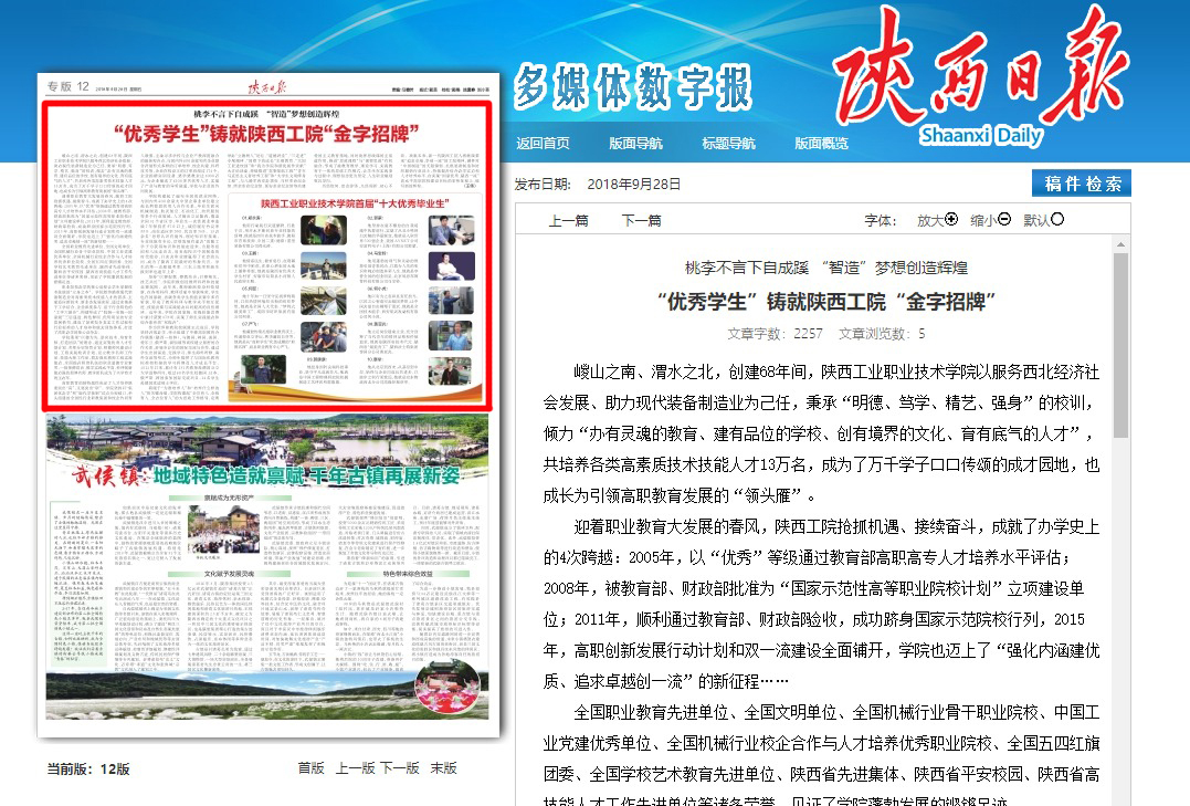 “优秀学生”铸就陕西工院“金字招牌”